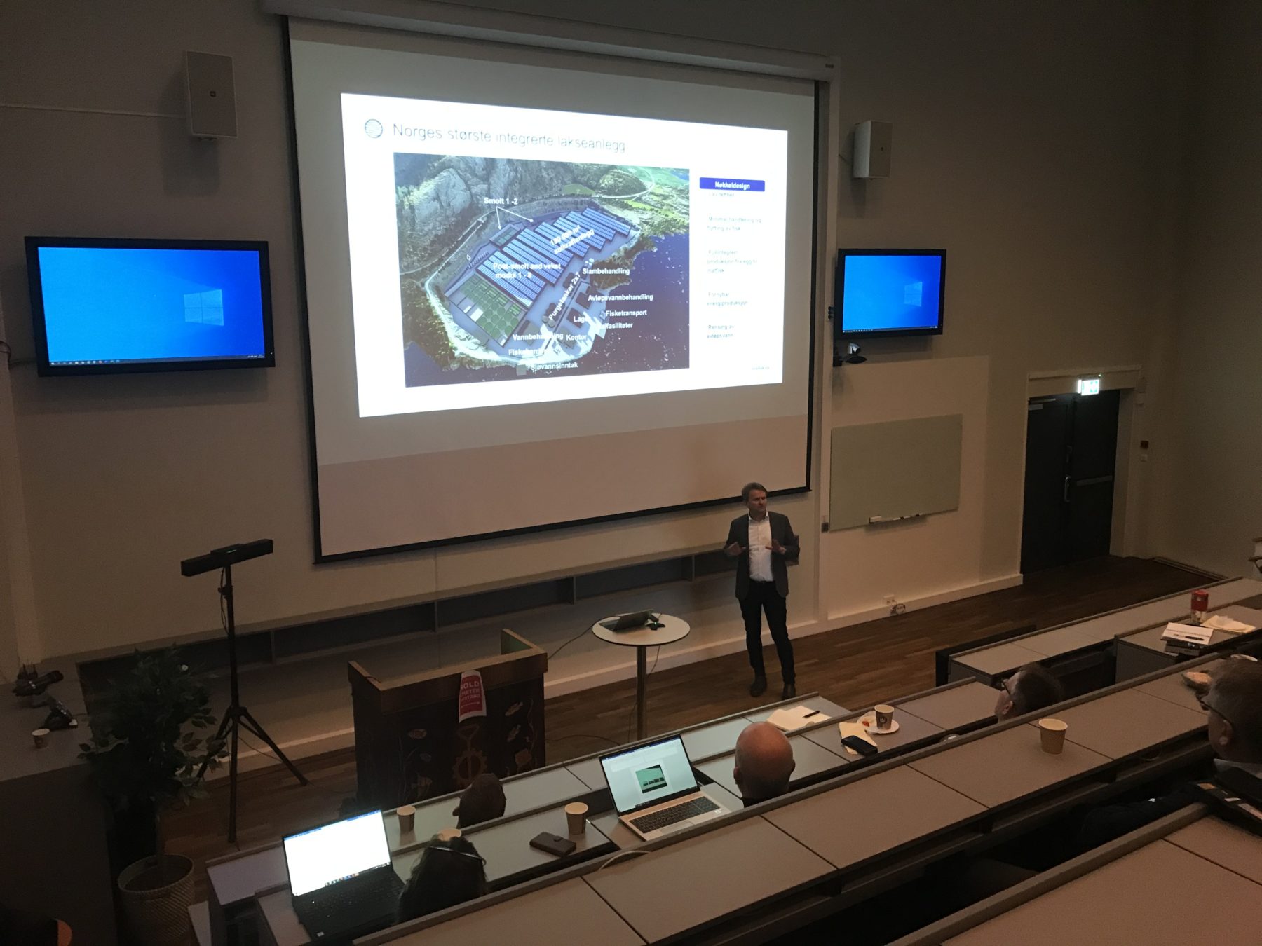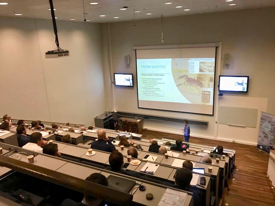 Selskapene Fishency Innovation AS, Ecofisk AS og Arctic Fish AS trakk fullt hus i auditoriet i Havets Hus på Ullandhaug – med trygg avstand og fastmonterte seter.